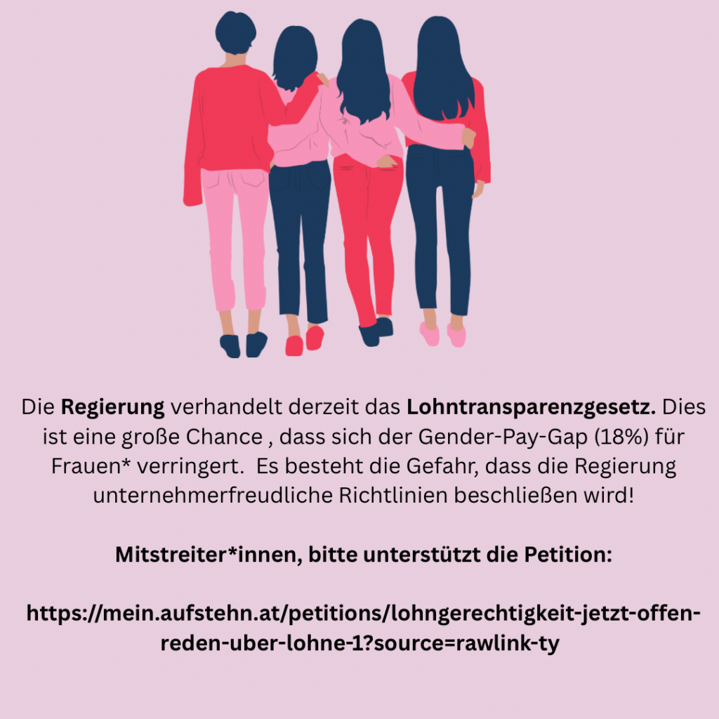 - :: österreichweiter FRAUEN*Streik :: 3.5.2027 :: Bereits jetzt laufen die Vorbereitungen zum großen österreichweiten FRAUEN*Streik am 3.5.2027. Dieser Streik soll an Größe, Schönheit und Breite alle vorangegangenen übertreffen und ganz Österreich für mindestens einen Tag lahmlegen! Wir… :: österreichweiter FRAUEN*Streik :: 3.5.2027 :: weiterlesen